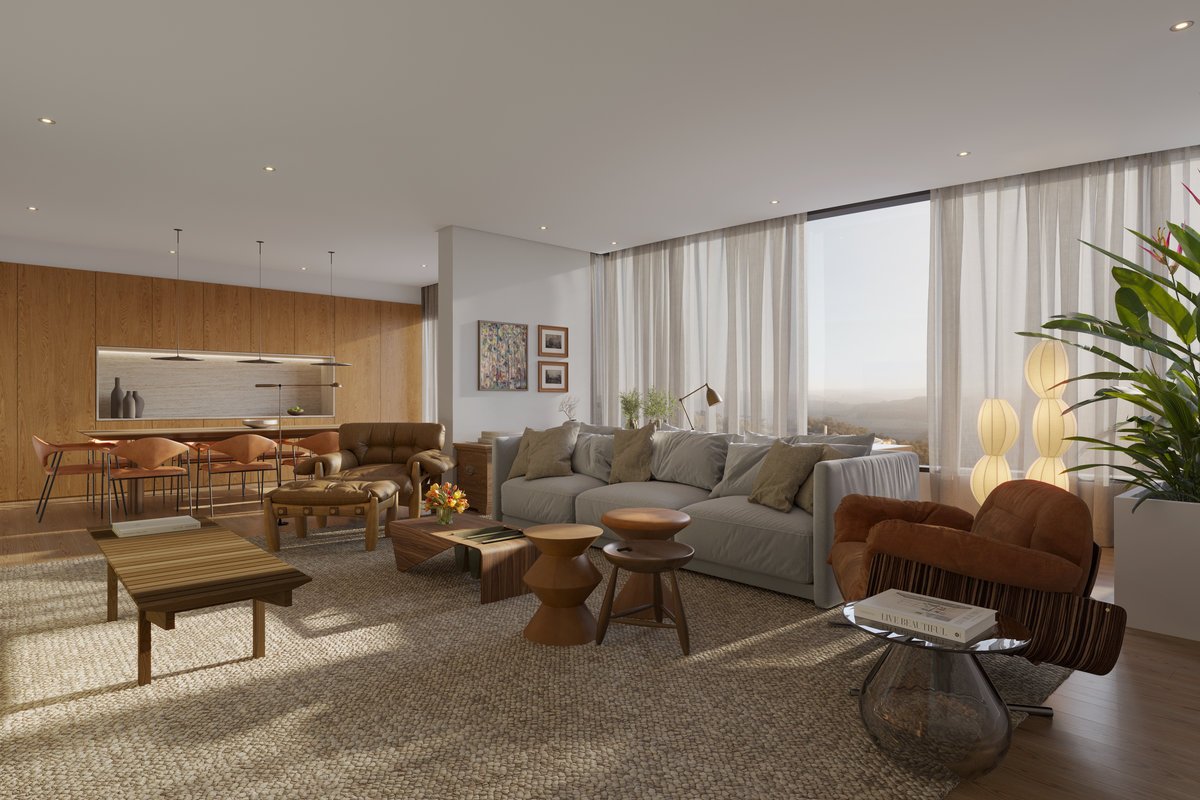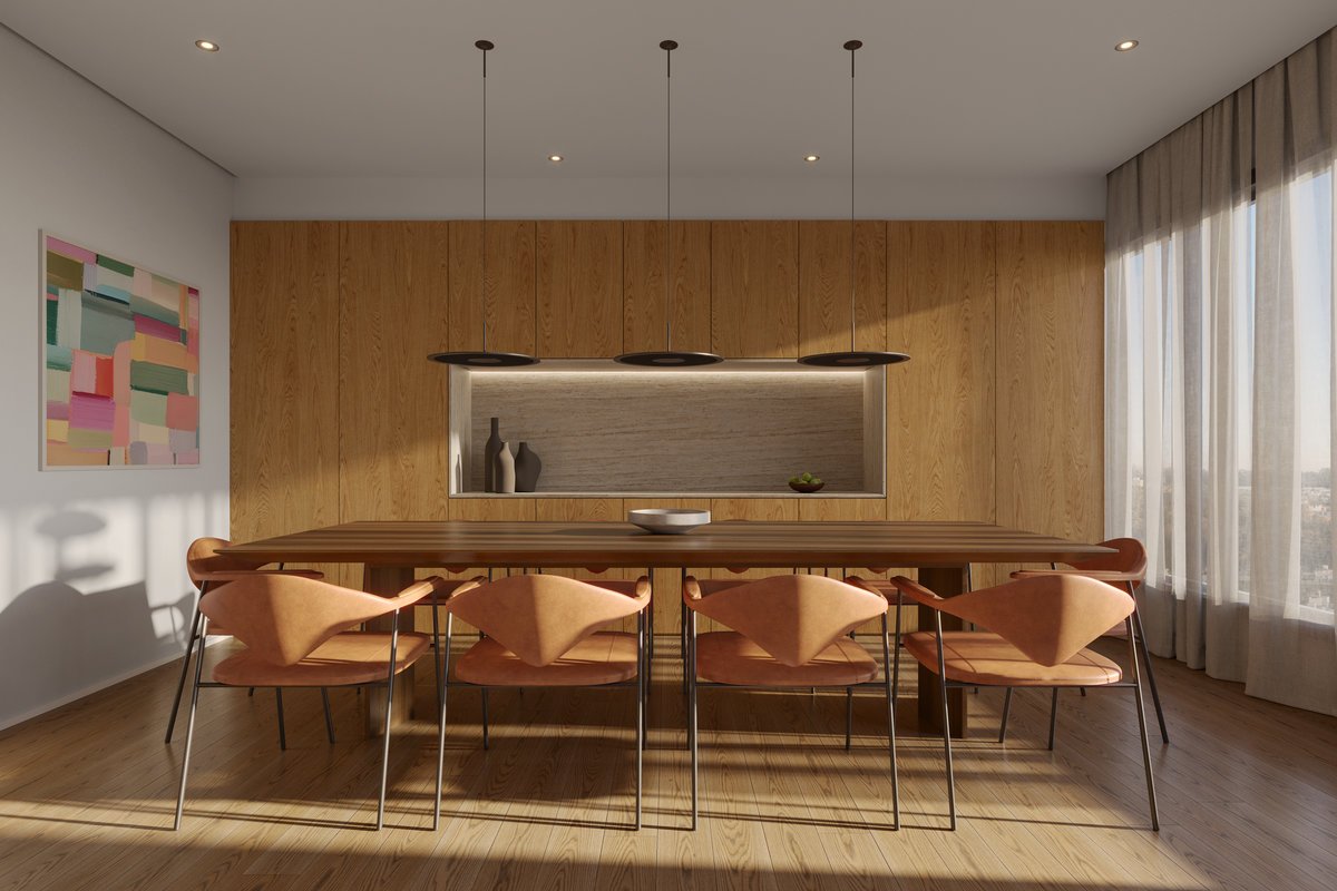 Esse espaço foi planejado para traduzir o estilo de vida e a personalidade dos moradores. Uma sala de estar e jantar integradas, pensadas de forma atemporal, onde cada elemento foi escolhido para criar uma atmosfera aconchegante, elegante e sofisticada, sem abrir mão da naturalidade.